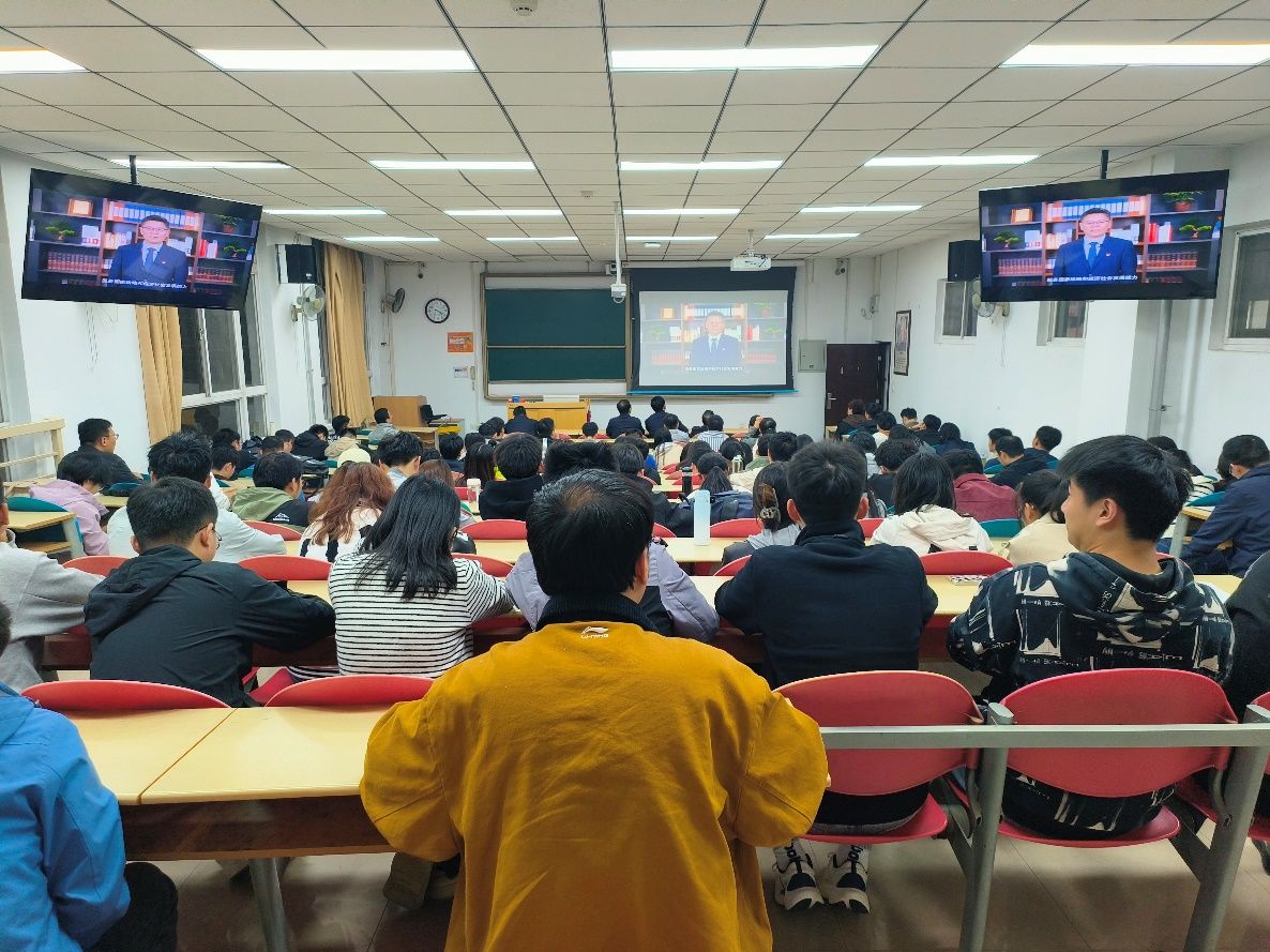 在信远一区117教室组织全体教职工开展线下集中学习,学生党员以及部分入党积极分子参加,集体观看由教育部思政司主办,相关高校师生党员共同录制的2025年高校党组织示范微党课第四讲《聚焦科技支撑力 共筑教育强国梦》,韩国av女优党委书记宋刚锋主持。