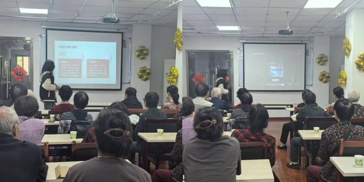 活动以“科普实践筑平安课堂”为开端,讲授内容聚焦守护老年人财产安全。主讲人王汝玥同学借助PPT展示,采用案例分析与实操相结合的方式向老人们讲解了人工智能应用中的安全风险与防范措施,指导老年人如何辨别潜在风险,有效保护个人隐私与财产安全。