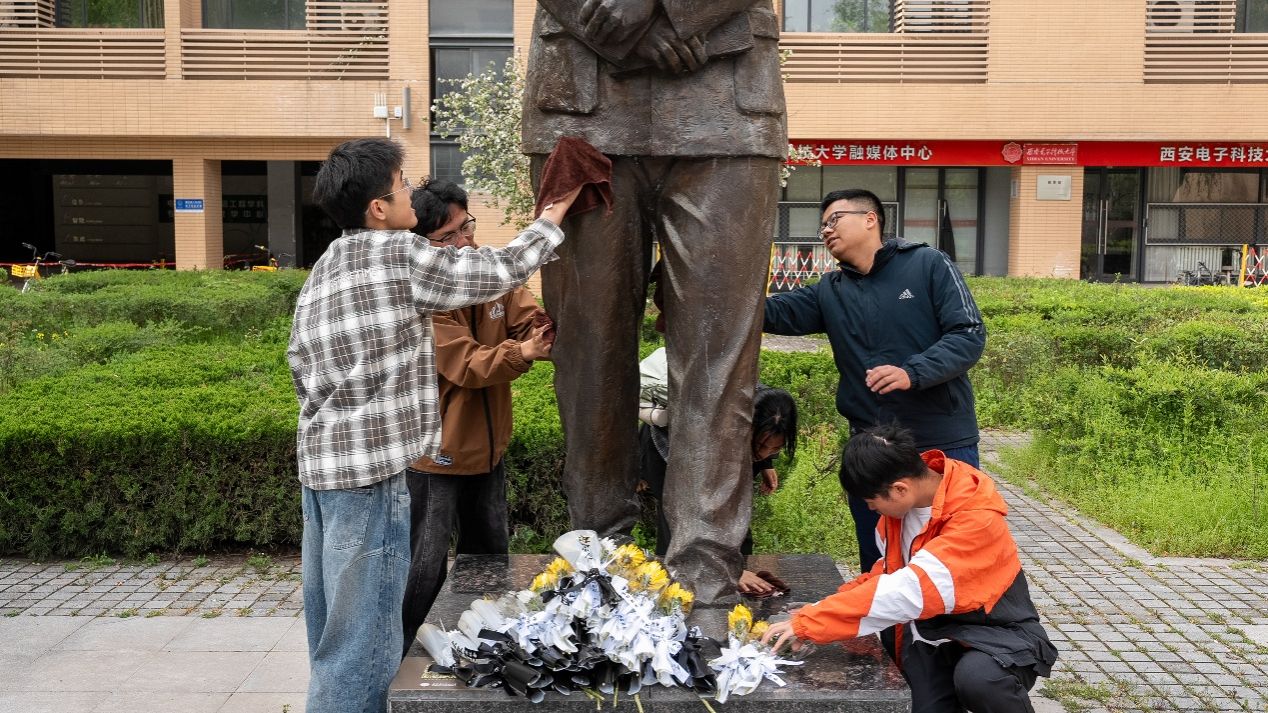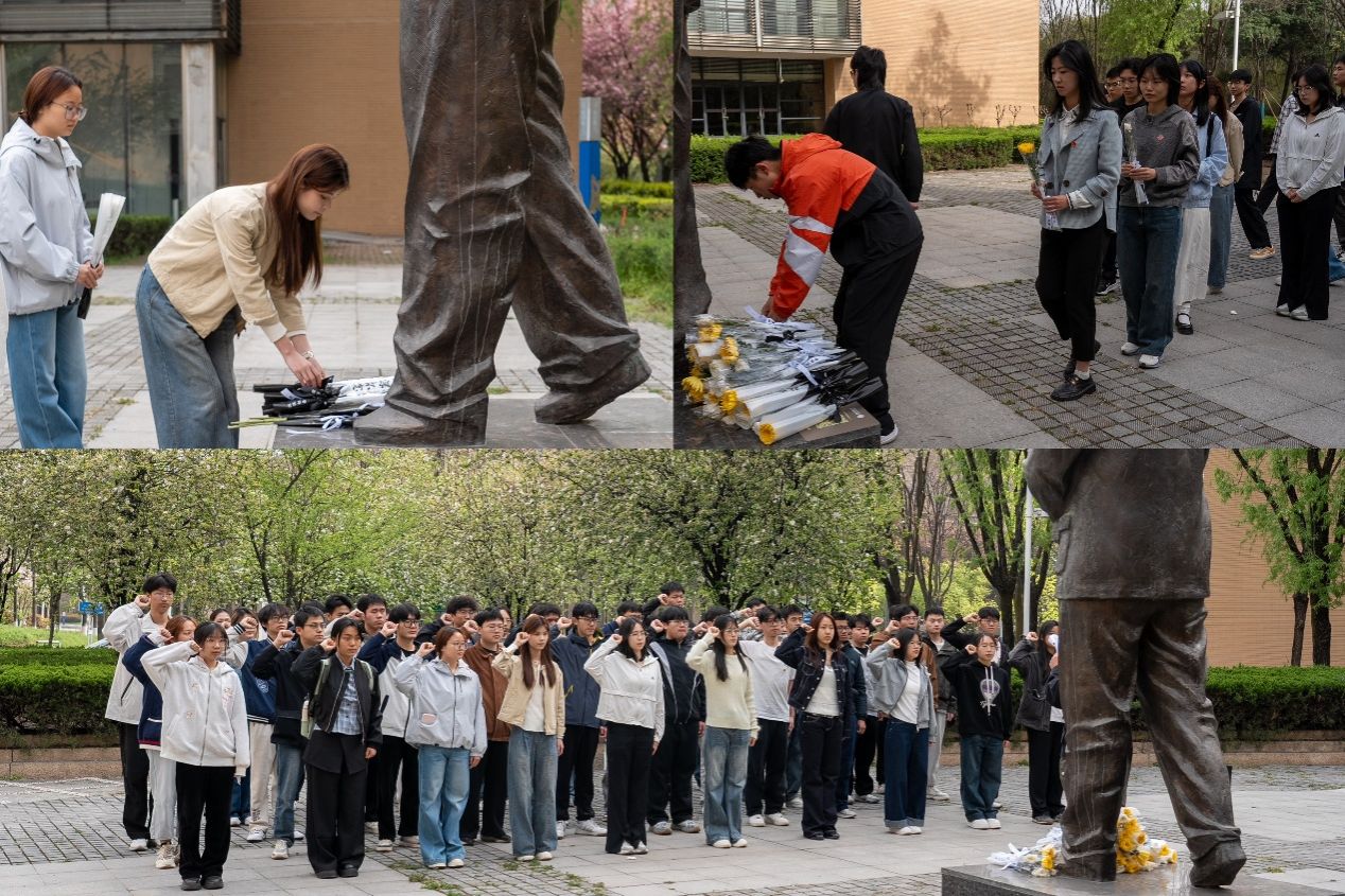 团委联合电子工程韩国av女优团委组织50余名学子前往长安校区毕德显雕像处开展清明祭扫。